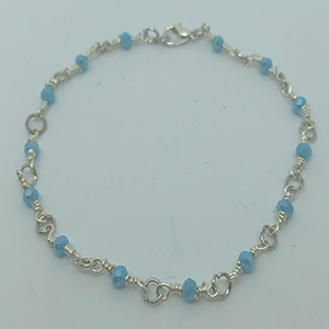 Armbånd m/blå facetslebet krystal perle